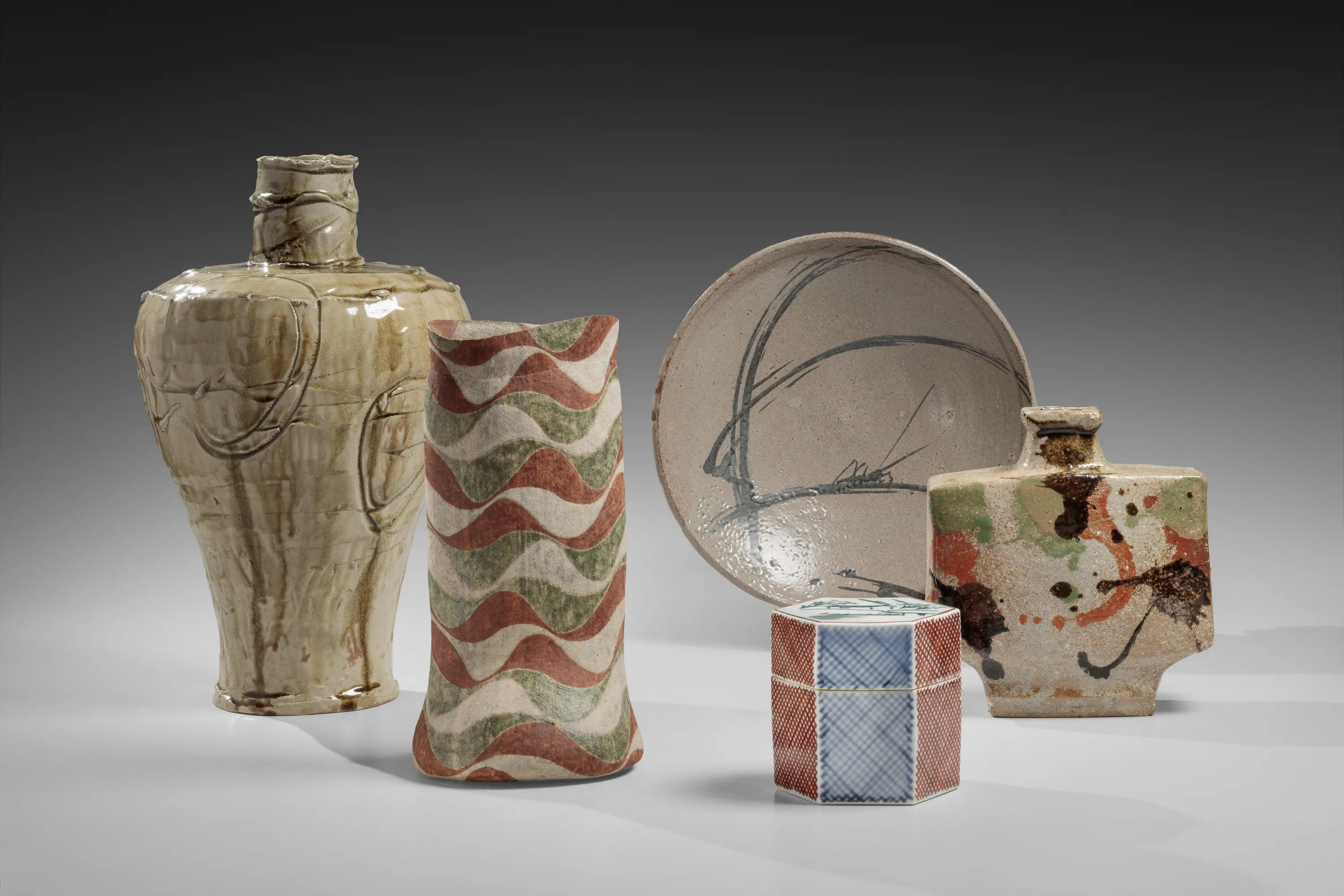 For Asia Week New York, Joan B Mirviss LTD presents Six Celestials, an exhibition featuring selected masterpieces by six artists whose seminal careers established the foundations upon which contemporary Japanese ceramics has been built. Each of these artists combined their unrivaled technical expertise in historical ceramic traditions with a unique and compelling artistic vision. By placing their diverse bodies of work in conversation with one another, the exhibition highlights the ways in which each of these twentieth-century icons helped pave the way for the emergence of Japanese ceramics as it exists today—one of the most dynamic and exciting fields of contemporary art.